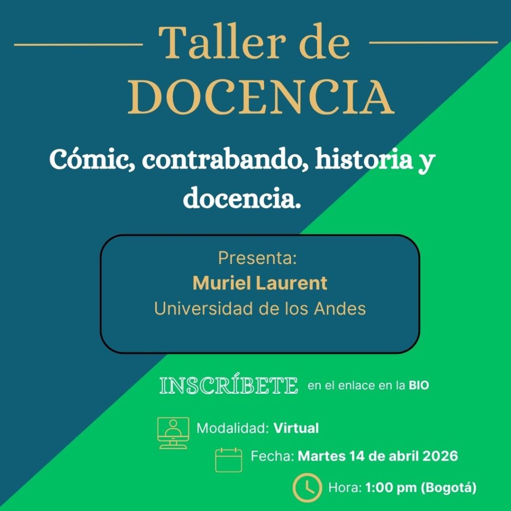 En esta ocasión nos acompañará Muriel Laurent, profesora titular de la Universidad de los Andes y PhD en Estudios Internacionales de la Universidad Complutense de Madrid (España). Durante su charla compartirá su experiencia con “Cómic, contrabando, historia y docencia”, una propuesta pedagógica que reflexiona sobre las formas de acercar el conocimiento histórico a públicos más amplios.