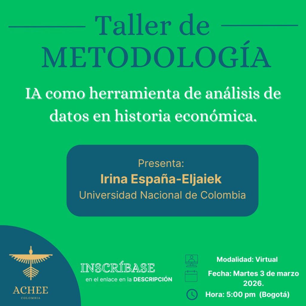 La Asociación Colombiana de Historia Económica y Empresarial (ACHEE) invita a la sexta sesión del Seminario Colombiano de Historia Económica. En esta ocasión nos acompaña Héctor Martínez en calidad de presentador (Escuela Colombiana de Ingeniería Julio Garavito), Joseph María Delgado (Universidad Pompeu Fabra) en calidad de comentarista.